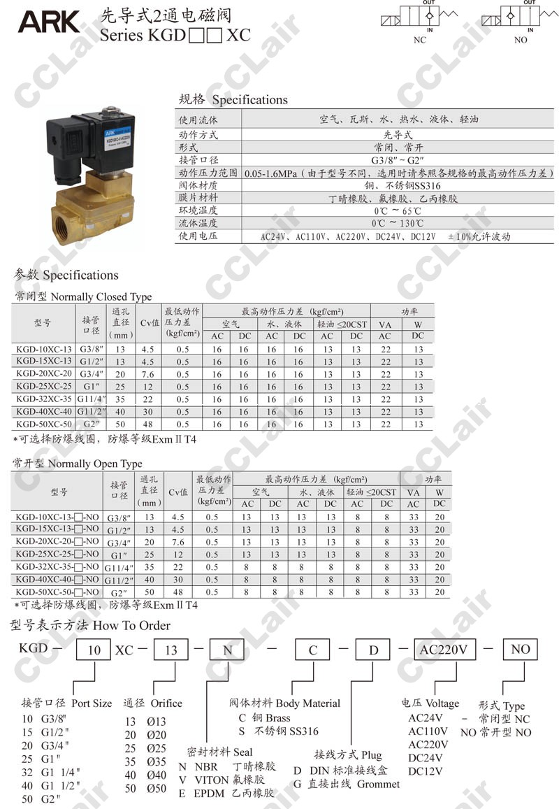 詳細信息 KGD-10XC-13,KGD-15XC-13,KGD-20XC-20,KGD-25XC-25,KGD-32XC-35,KGD-40XC-40,KGD-50XC-50,ARK先導式2通電磁閥