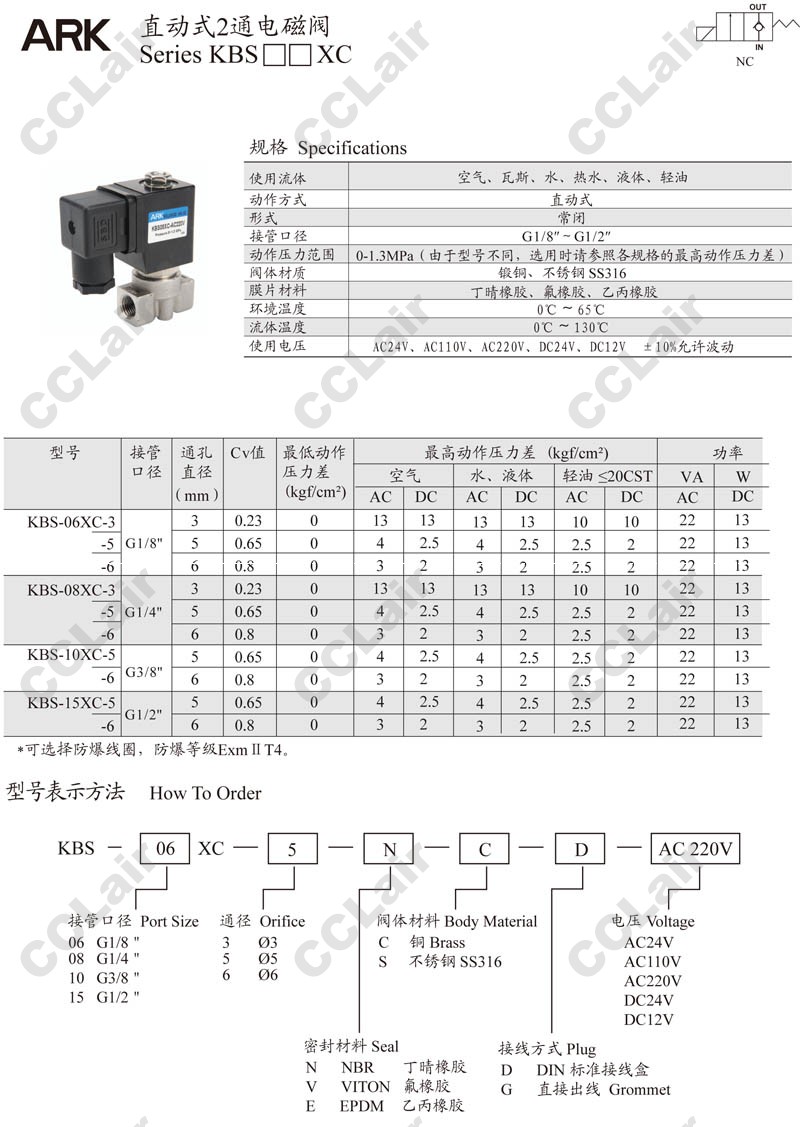 詳細(xì)信息 KBS-06XC,KBS-08XC,KBS-10XC,KBS-15XC,KBS-06XC-3,KBS-08XC-6,KBS-15XC-6,ARK直動式2通電磁閥
