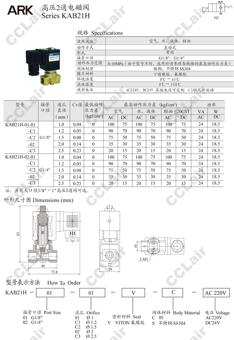 詳細信息 KAB21H-01,KAB21H-02,KAB21H-01-01,KAB21H-01-C1,KAB21H-02-02,KAB21H-02-C3,ARK高壓2通電磁閥