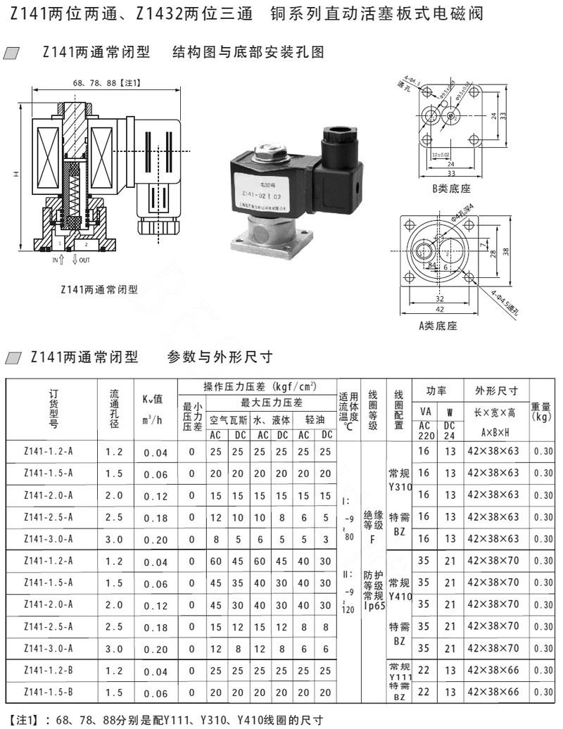 詳細信息 Z14321-1.2-B,Z14322-1.5-B,Z1433-1.2-B,Z141-1.2-A,Z14321-2.5-A,直動活塞板式電磁閥