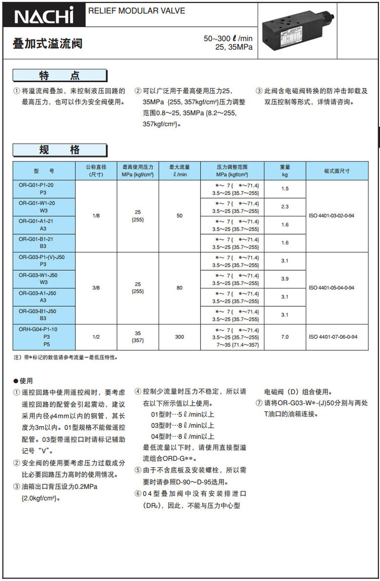詳細(xì)信息 OR-G01,OR-G03,ORH-G04,OR-G01-P1-20,ORH-G04-P5-10,OR-G03-P3-V-J50,NACHI疊加式溢流閥