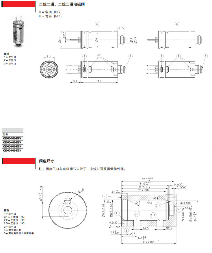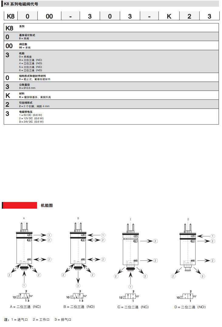 K8000-003-K21,K8000-303-K22,K8000-403-K23,K8000-503-K21,camozzi直動(dòng)式微型電磁閥