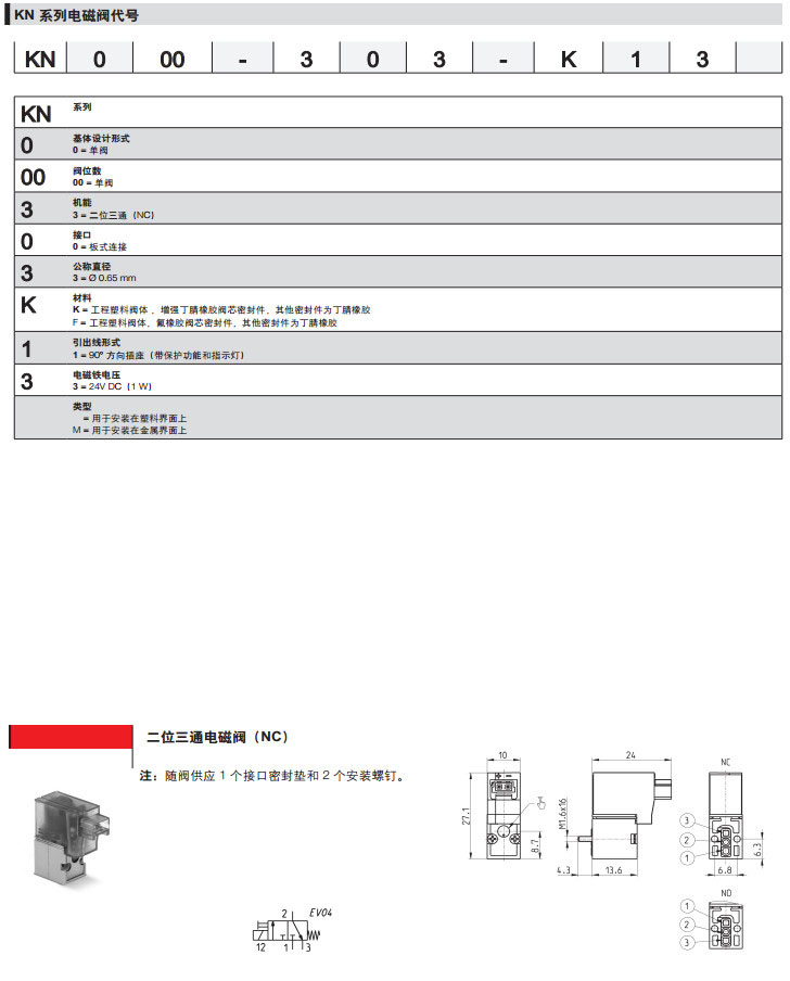 KN000-303-K13,KN000-303-F13,KN000-303-K13M,camozzi直動(dòng)式微型電磁閥