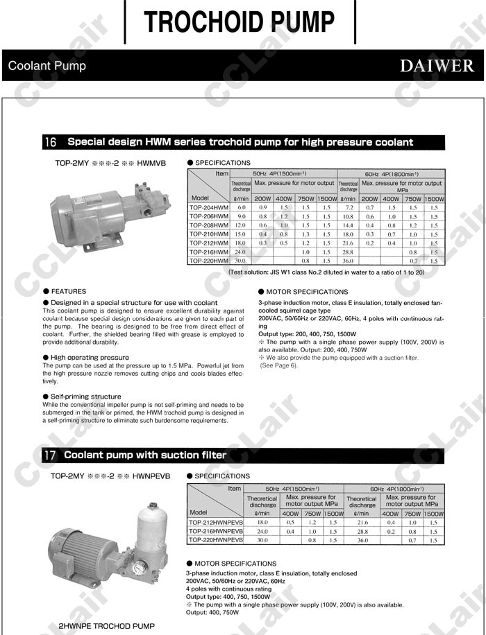 TOP-212HWNPEVB,TOP-216HWNPEVB,TOP-220HWNPEVB,DAIWER冷卻劑泵