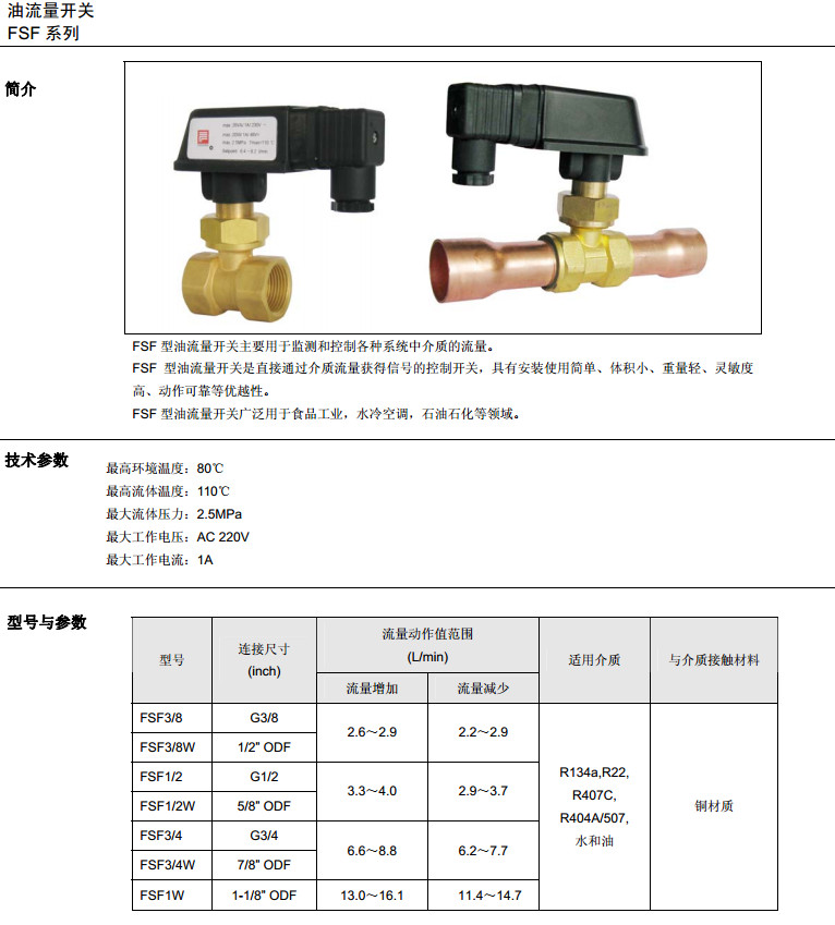 詳細(xì)信息 FSF3/8,FSF3/8W,FSF1/2,FSF1/2W,FSF3/4,FSF3/4W,FSF1W,油流量開關(guān)