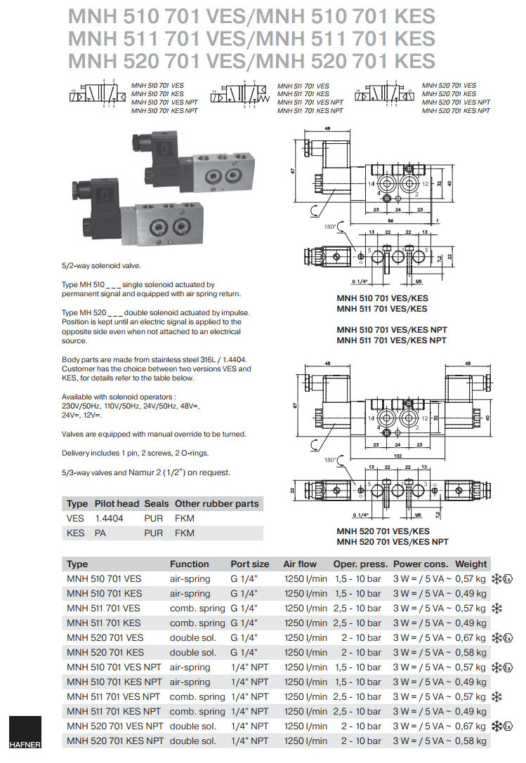 MNH510701VES,MNH510701KES,MNH510701KESNPT,MNH520701VES,MNH520701KESNPT,MNH510711VES,Hafner電磁閥