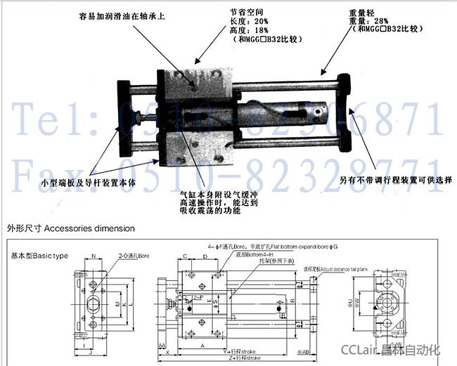 MGCLB32-600,MGCLB40-75,MGCLB40-100,MGCLB40-125,MGCLB40-150,MGCLB40-200,小型帶導(dǎo)桿氣缸