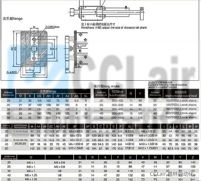 MGCLF50-350,MGCLF50-400,MGCLF50-450,MGCLF50-500,MGCLF50-600,MGCLF50-700,小型帶導(dǎo)桿氣缸