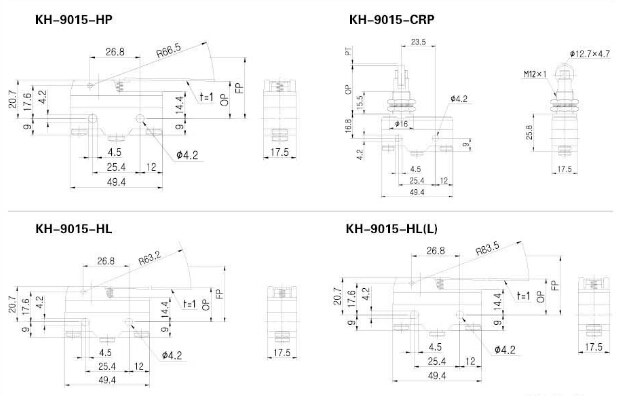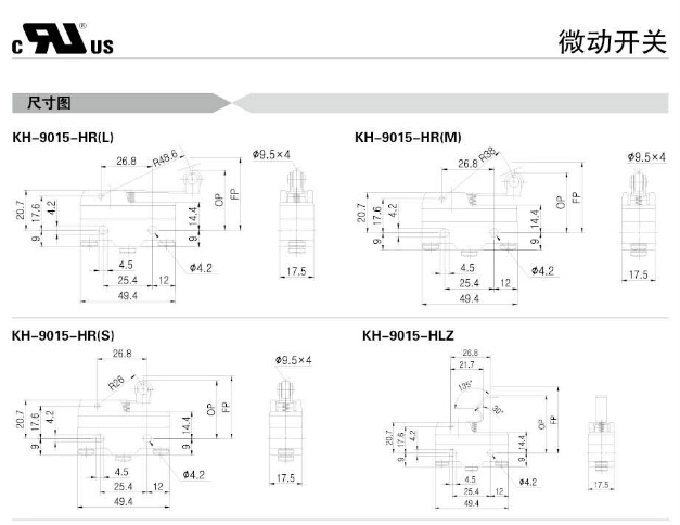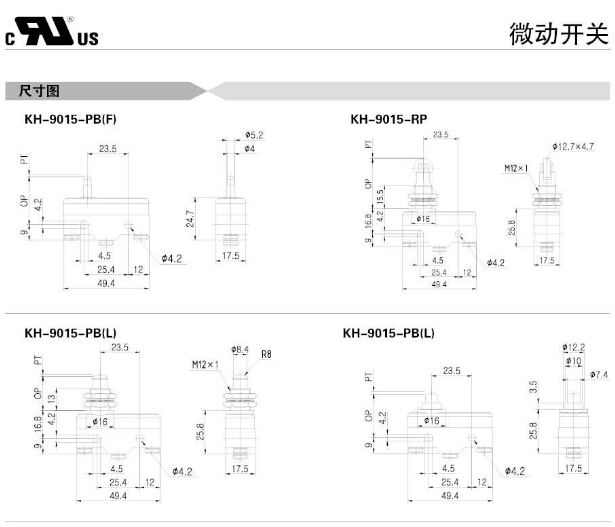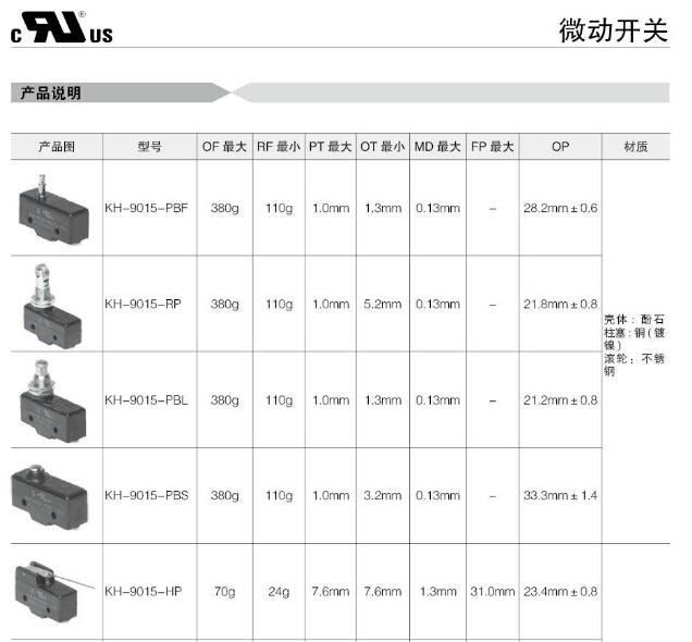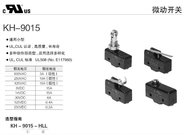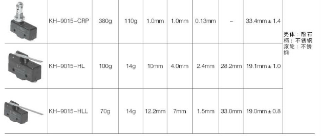 KH-9015-PBF,KH-9015-RP,KH-9015-PBL,KH-9015-PBS,KH-9015-HP,KH-9015-CRP,KH-9015-HL,Koino微動開關(guān)
