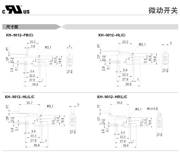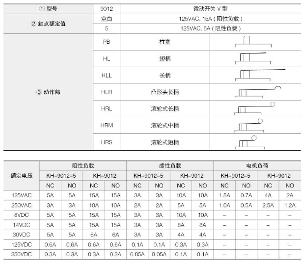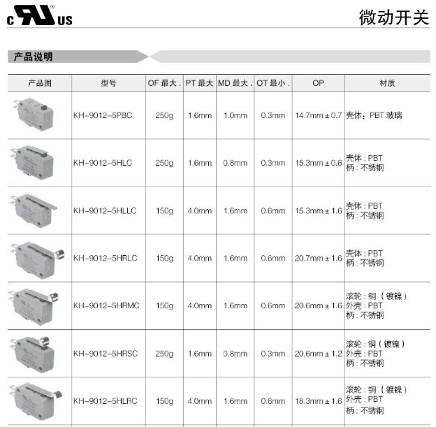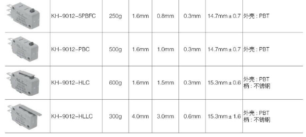 KH-9012-5,KH-9012,KH-9012-5PBC,KH-9012-5HLC,KH-9012-HLC,KH-9012-HRLC,KH-9012-HRMC,Koino微動開關(guān)