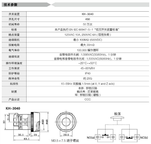 詳細(xì)信息 KH-3040,Koino Φ30重負(fù)荷開關(guān)