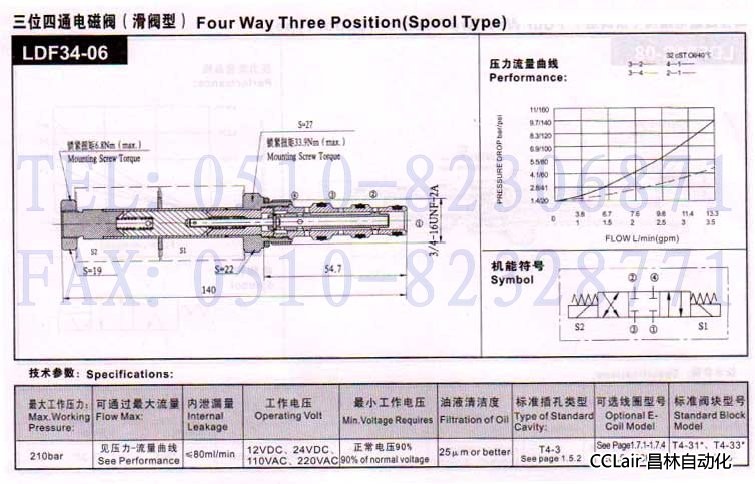 LDF34-06,三位四通電磁閥