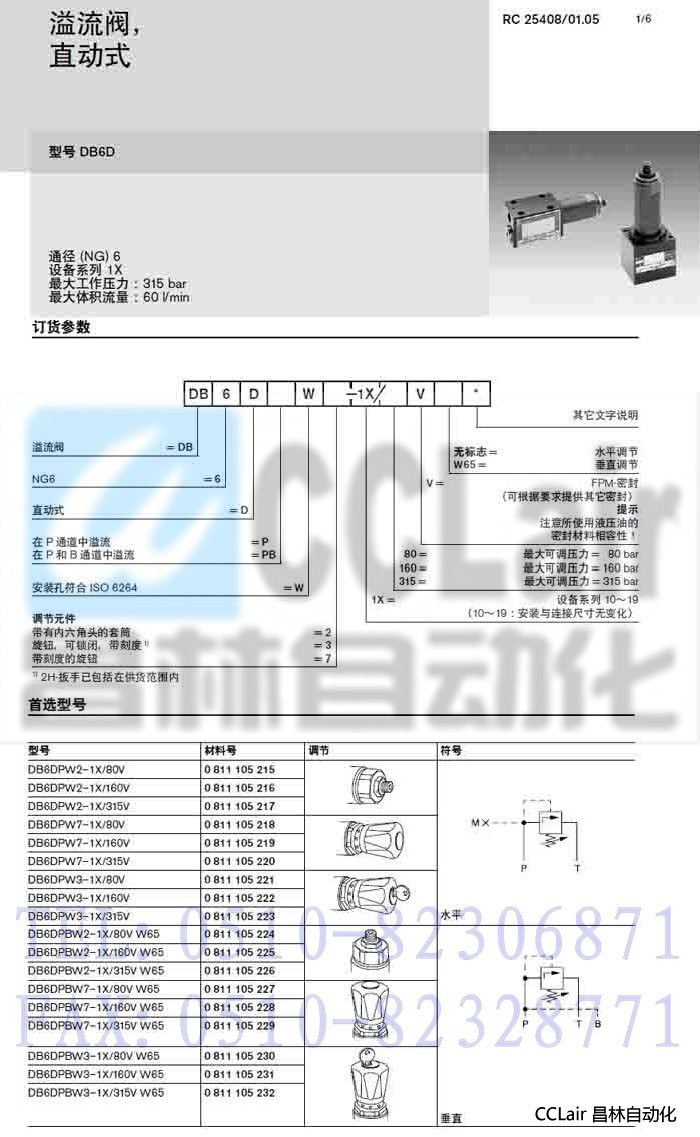 DB6DPW3-1X/80V,DB6DPBW3-1X/80VW65, ,直動(dòng)式溢流閥,力士樂(lè)REXROTH,德國(guó)力士樂(lè)