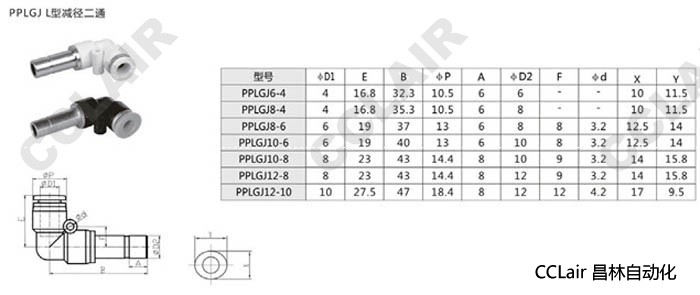 詳細信息 PPLGJ6-4,PPLGJ8-4,PPLGJ8-6,PPLGJ10-6,PPLGJ10-8,PPLGJ12-8,PPLGJ12-10,L型減徑二通接頭