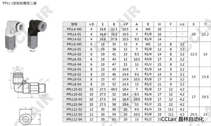 PPLL4,PPLL6,PPLL8,PPLL10,PPLL12,L型加長螺紋二通接頭
