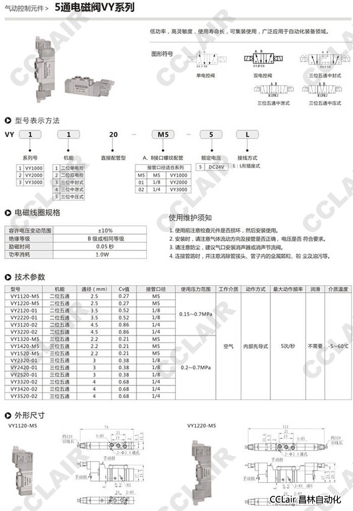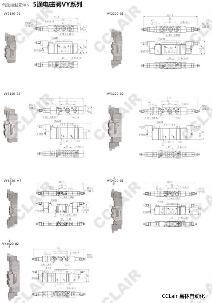 VY1520-02,VY2520-02,VY3520-02,VY1320-M5,VY2520-M5,VY3220-01,5通電磁閥