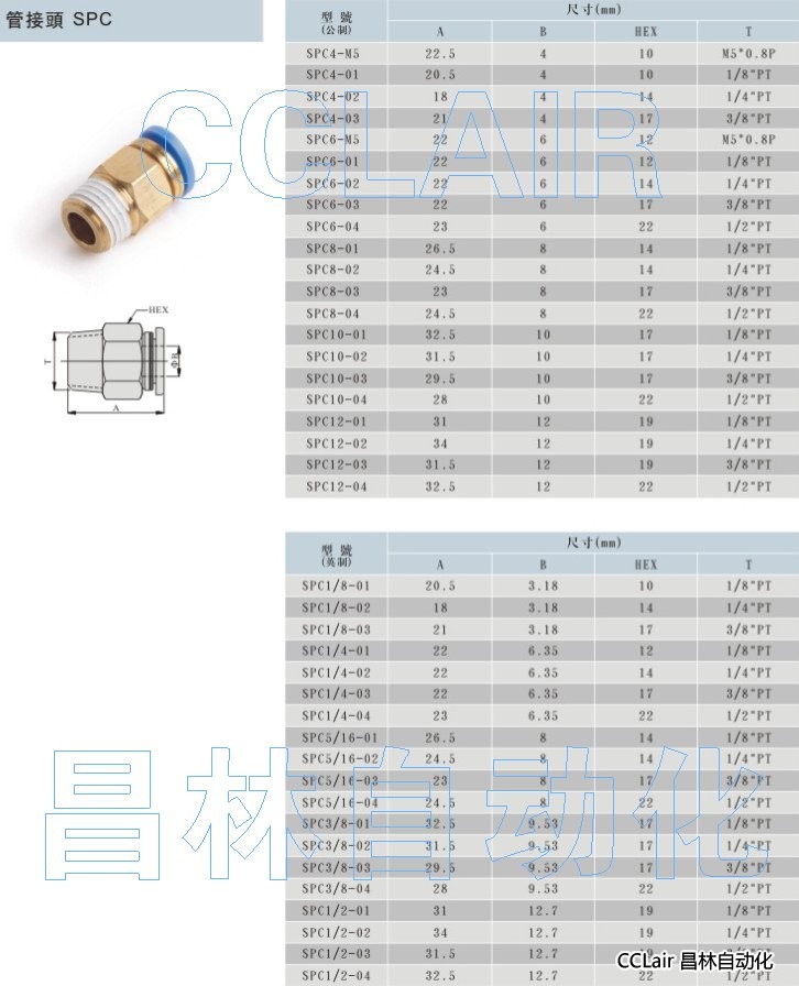 SPC4-M5,SPC6-01,SPC8-02,SPC10-03,SPC12-04,SPC1/8-01,SPC1/4-02,SPC5/16-03,接頭