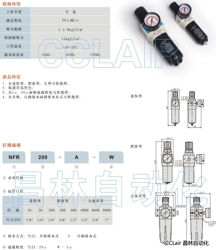 詳細(xì)信息 NFR10-A-W,NFR20-A-W,NFR200-A-W,NFR300-A-W,NFR400-A-W,NFR4000-A-W,空氣調(diào)理組合