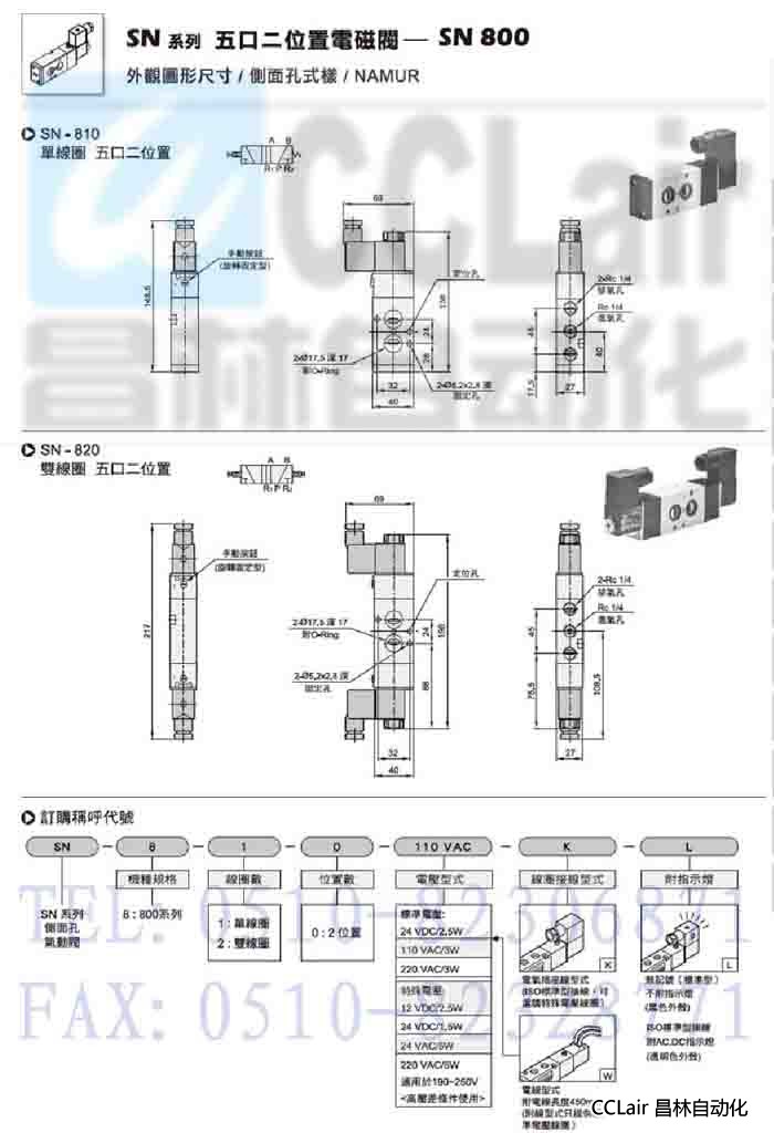 詳細(xì)信息 SN-8102,SN-8202,五口二位電磁閥