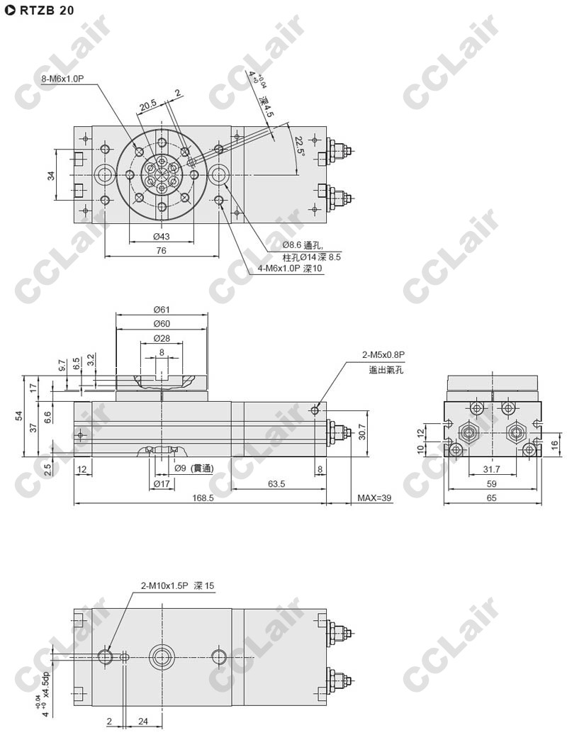 氣立可(chelic),RTZB10-SD1,RTZB20-SD2,RTZB30-SB1,RTZB50-SB2,RTZB10-SDN2,RTZB20-SDP2,RTZB50-SH2,三位置回轉(zhuǎn)氣缸