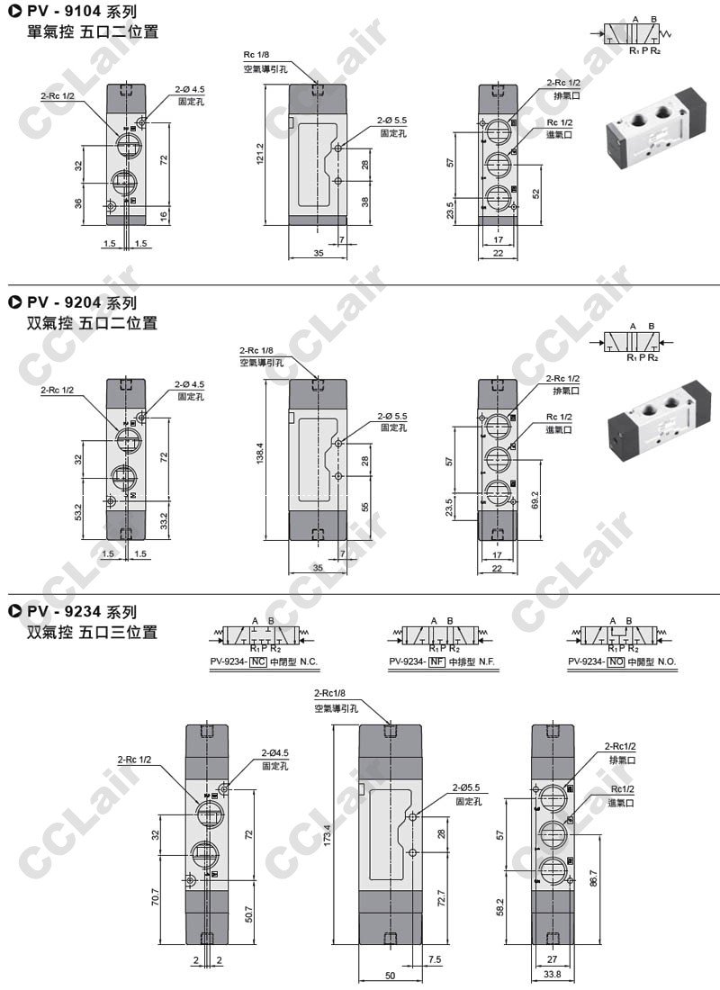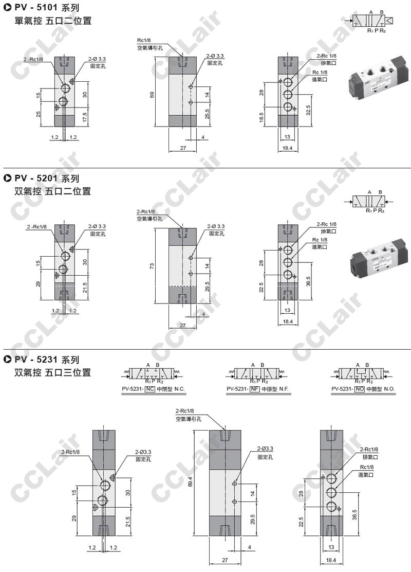 PV-5101-NC,PV-5201-NC,PV-5101-NF,PV-5201-NF,PV-5101-NO,PV-5201-NO,氣動閥