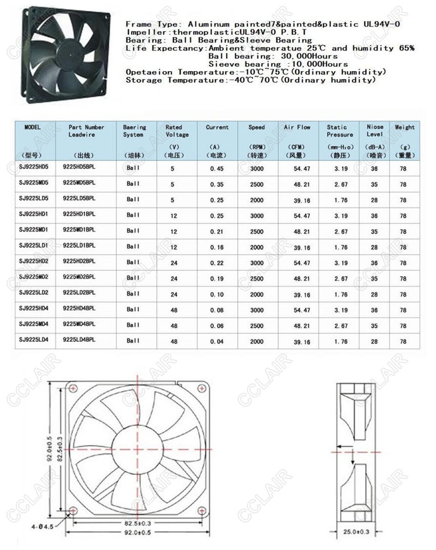 SJ9225HD5,SJ9225MD5,SJ9225LD5,SJ9225HD1,SJ9225MD1,SJ9225LD1,SJ9225,SANJI DC軸流風機