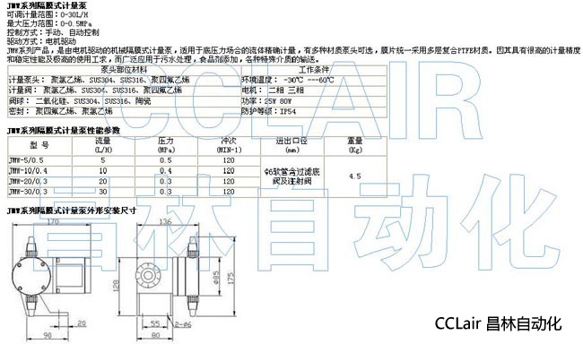 詳細信息 JMW-5/0.5,JMW-10/0.4,JMW-20/0.3,JMW-30/0.3, 隔膜式計量泵