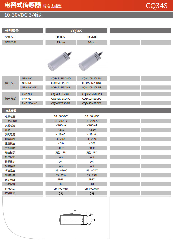 詳細(xì)信息 CQ34SCF15DNO,CQ34SCF15DNC,CQ34SCF15DNR,CQ34SCF15DPO,CQ34SCF15DPC,CQ34SCF15DPR,電容式傳感器