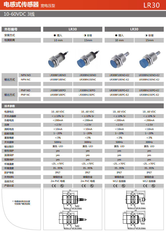 LR30BF10ENO,LR30BF10ENC,LR30BN15ENO,LR30BN15ENC,LR30BN15EPO,LR30BN15EPC,電感式傳感器