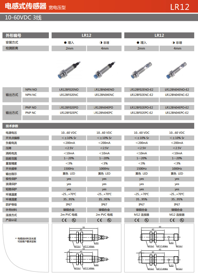 詳細信息 LR12BF02ENO,LR12BF02ENC,LR12BF02EPO,LR12BF02EPC,LR12BN04ENO,LR12BN04ENC,LR12BN04EPO,電感式傳感器