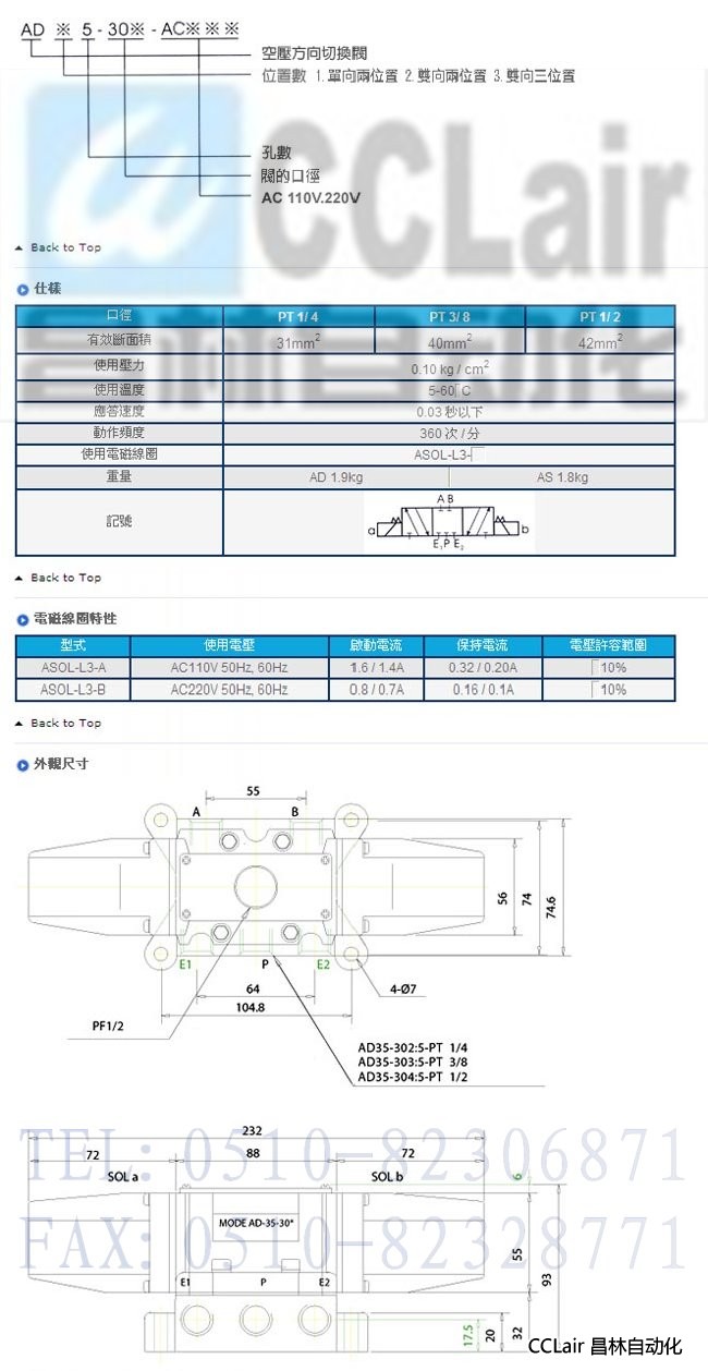 AD35-302, AS35-302,AD35-303, AS35-303,AD35-304,AS35-304,空壓用直動(dòng)式電磁閥