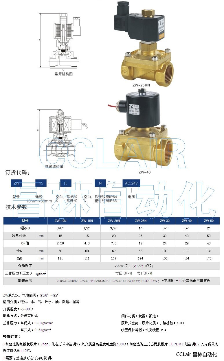 詳細(xì)信息 ZW-10N,ZW-15N,ZW-20N,ZW-25N,ZW-32,ZW-40,ZW-50,水、氣電磁閥,G3/8〞~G2〞