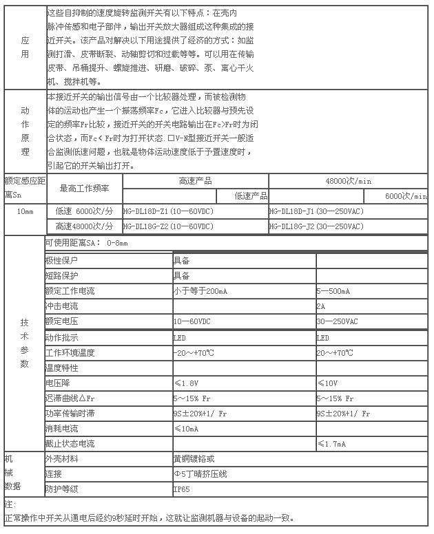 詳細(xì)信息 速度檢測開關(guān) HG-DL18D-Z1,HG-DL18D-J1,HG-DL18G-Z2,HG-DL18G-J2,
