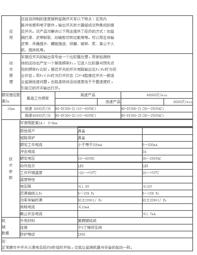 詳細(xì)信息 DY38,速度檢測開關(guān),HG-DY38D-Z1,HG-DY38D-J1,HG-DY38G-Z2,HG-DY38G-J2,
