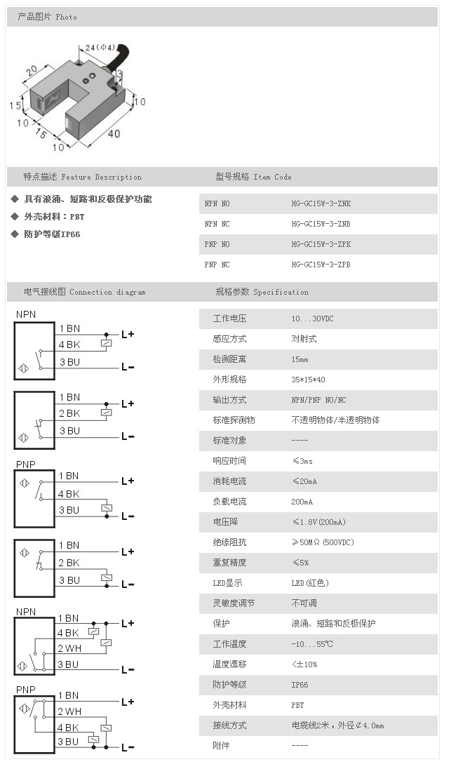 詳細(xì)信息 槽型光電開(kāi)關(guān)/傳感器 HG-GC15W-3-ZNK,HG-GC15W-3-ZNB,HG-GC15W-3-ZPK,HG-GC15W-3-ZPB,