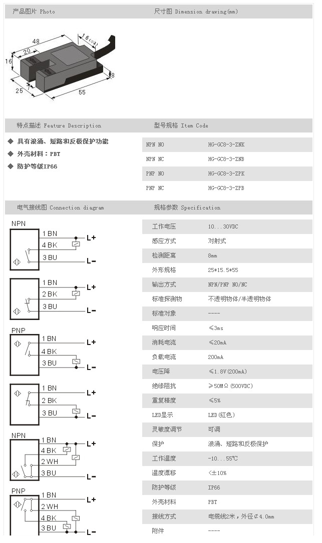 詳細(xì)信息 槽型光電開關(guān)/傳感器 HG-GC8-3-ZNK,HG-GC8-3-ZNB,HG-GC8-3-ZPK,HG-GC8-3-ZPB