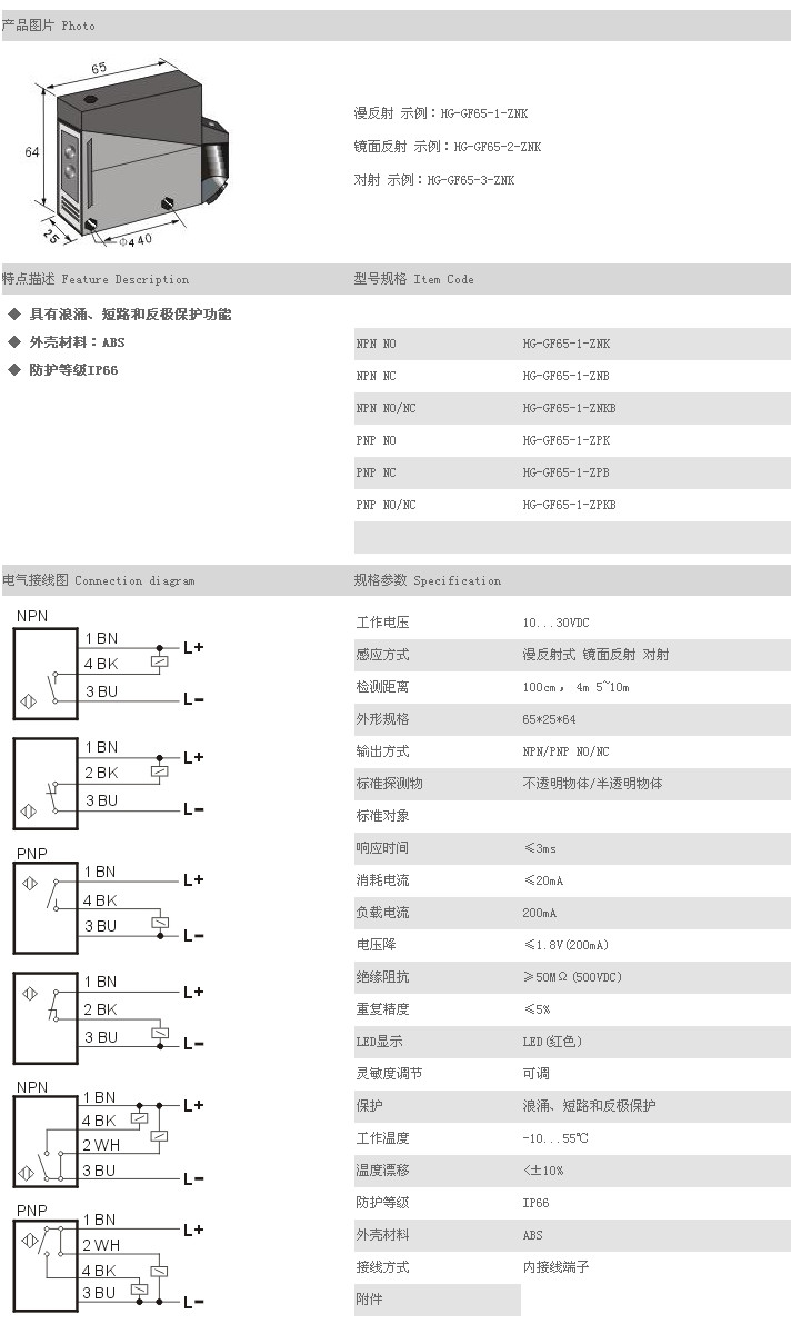詳細(xì)信息 方型光電開關(guān)/傳感器 HG-GF65-1-ZNK,HG-GF65-1-ZNB,HG-GF65-1-ZNKB,HG-GF65-1-ZPK,HG-GF65-1-ZPB,HG-GF65-1-ZPKB,