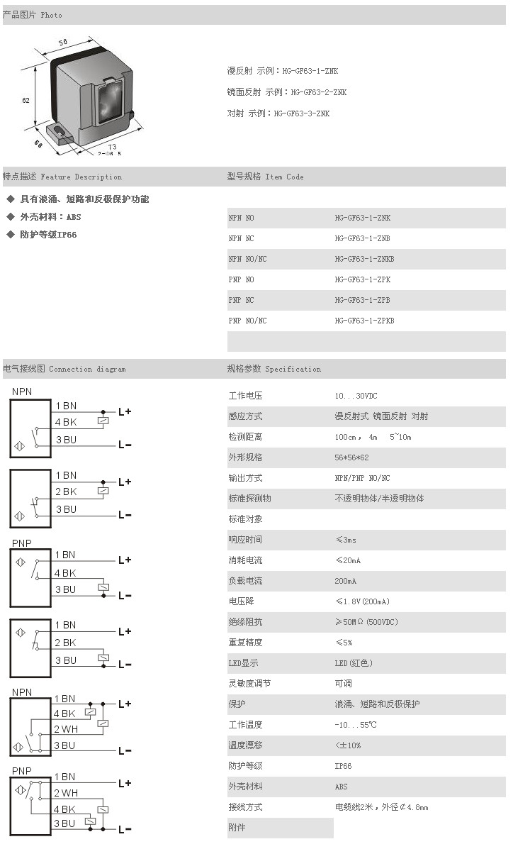 詳細信息 方型光電開關(guān)/傳感器 HG-GF63-1-ZNK,HG-GF63-1-ZNB,HG-GF63-1-ZNKB,HG-GF63-1-ZPK,HG-GF63-1-ZPB,HG-GF63-1-ZPKB,