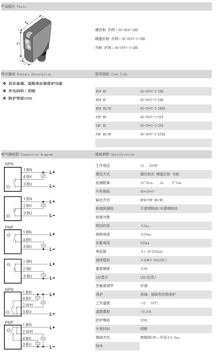 詳細(xì)信息 方型光電開關(guān)/傳感器 HG-GF47-3-ZNK,HG-GF47-3-ZNB,HG-GF47-3-ZNKB,HG-GF47-3-ZPK,HG-GF47-3-ZPB,HG-GF47-3-ZPKB