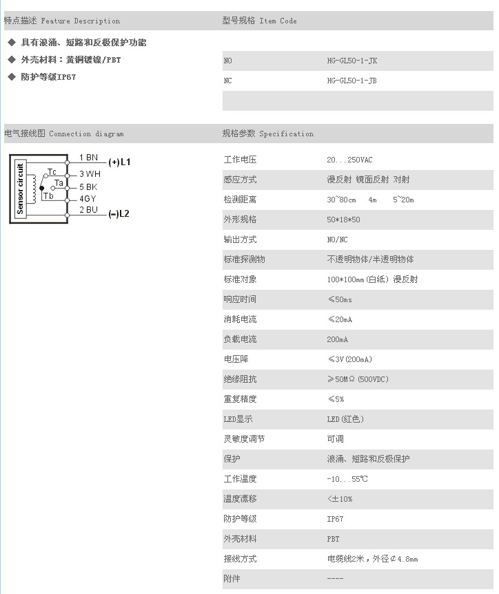 產(chǎn)品: 瀏覽次數(shù):313方型光電開關(guān)/傳感器 HG-GL50-1-JK,HG-GL50-1-JB,