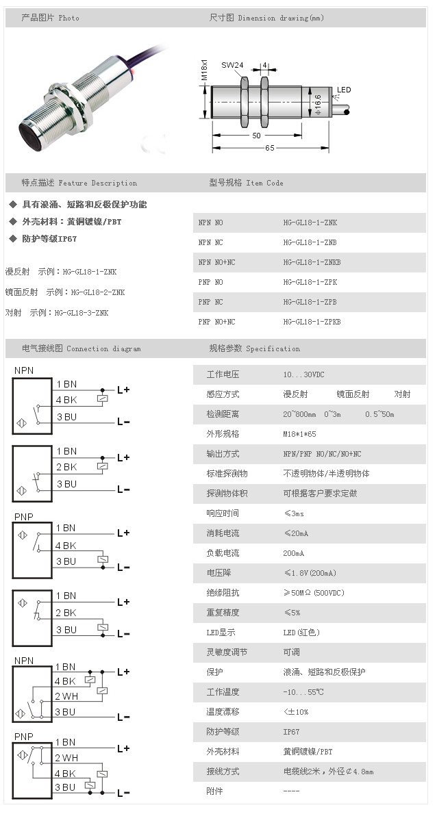 詳細信息 圓柱型光電開關(guān)/傳感器 HG-GL18-1-ZNK,HG-GL18-1-ZNB,HG-GL18-1-ZNKB,HG-GL18-1-ZPK,HG-GL18-1-ZPB,HG-GL18-1-ZPKB,HG-GL18-2-ZNK,HG-GL18-2-ZNB,HG-GL18-2-ZNKB,HG-GL18-2-ZPK,HG-GL18-2-ZPB,HG-GL18-2-ZPKB,HG-GL18-3-ZNK,HG-GL18-3-ZNB,HG-GL18-3-ZNKB,HG-GL18-3-ZPK,HG-GL18-3-ZPB,HG-GL18-3-ZPKB,