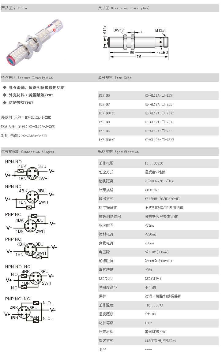 詳細(xì)信息 圓柱型光電開關(guān)/傳感器 HG-GL12A-1-ZNK,HG-GL12A-1-ZNB,HG-GL12A-1-ZNKB,HG-GL12A-1-ZPK,HG-GL12A-1-ZPB,HG-GL12A-1-ZPKB,HG-GL12A-2-ZNK,HG-GL12A-2-ZNB,HG-GL12A-2-ZNKB,HG-GL12A-2-ZPK,HG-GL12A-2-ZPB,HG-GL12A-2-ZPKB,HG-GL12A-3-ZNK,HG-GL12A-3-ZNB,HG-GL12A-3-ZNKB,HG-GL12A-3-ZPK,HG-GL12A-3-ZPB,HG-GL12A-3-ZPKB,