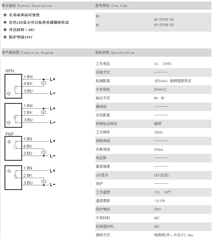 產(chǎn)品: 瀏覽次數(shù):335普通型磁性開關 HG-SF26W-ZK,HG-SF26W-ZB,