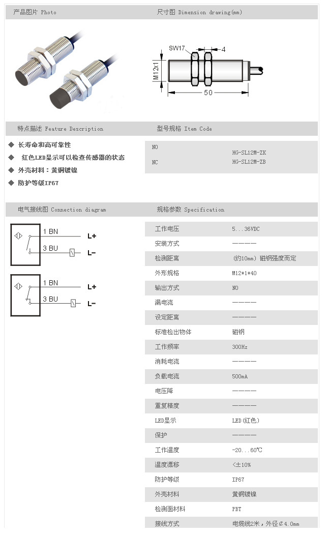 詳細信息 普通型磁性開關(guān) HG-SL12M-ZK,HG-SL12M-ZB,