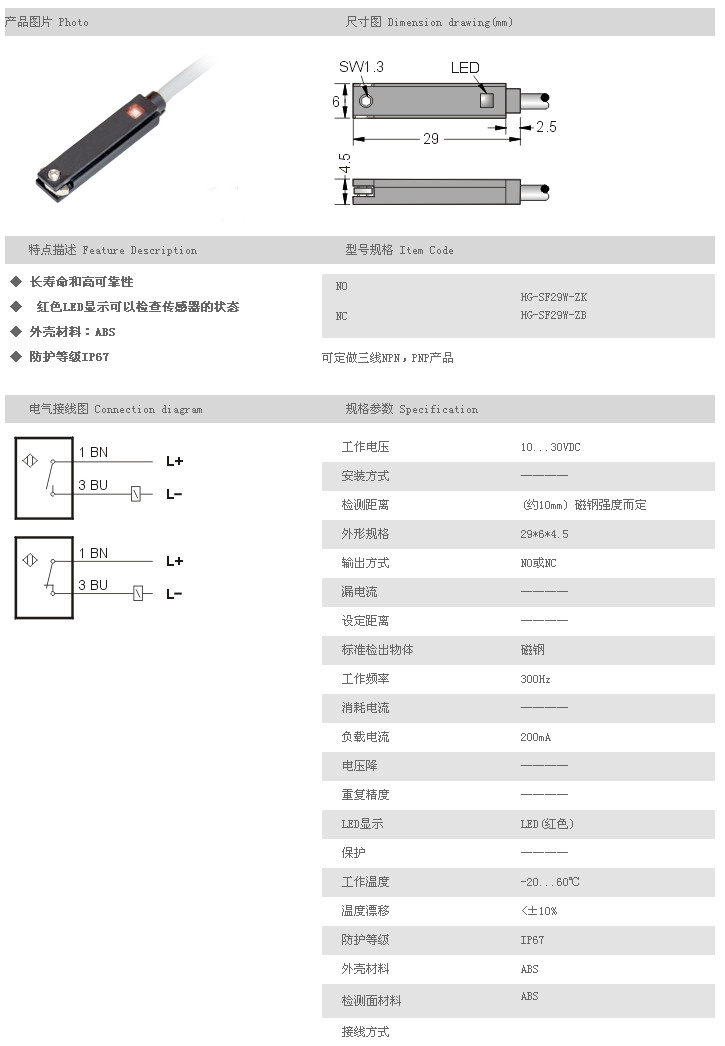 普通型磁性開(kāi)關(guān) HG-SF29W-ZK,HG-SF29W-ZB,