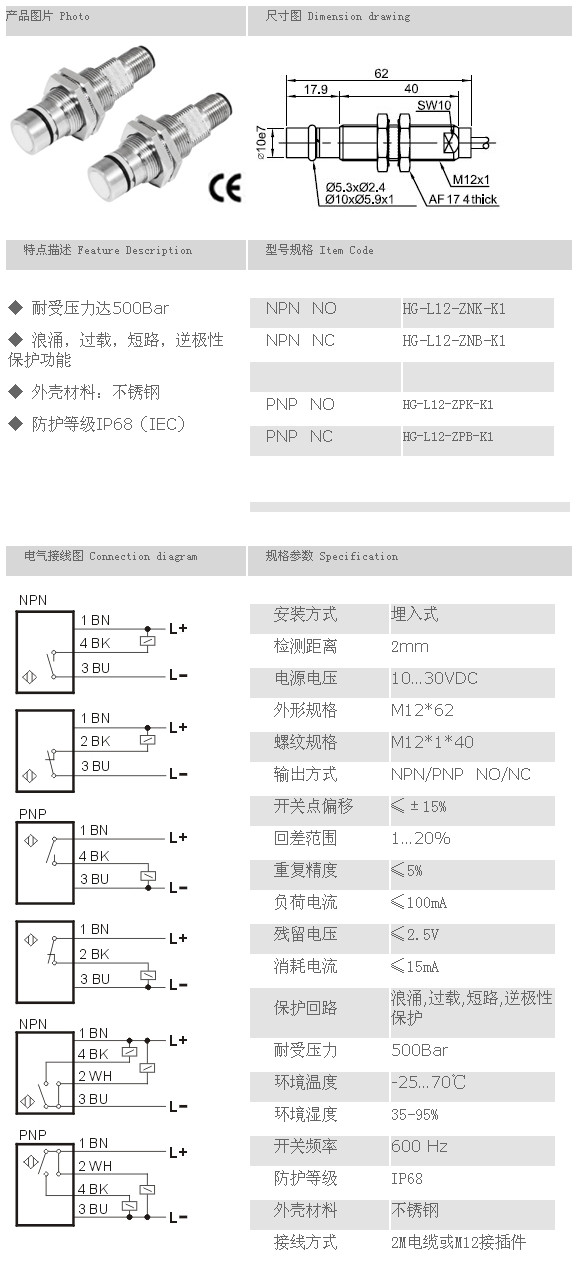 耐高壓接近開(kāi)關(guān)傳感器 HG-L12-ZNK-K1,HG-L12-ZNB-K1,HG-L12-ZPK-K1,HG-L12-ZPB-K1,
