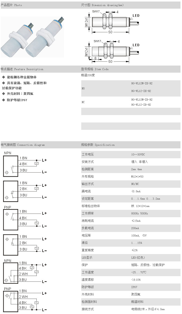詳細(xì)信息 耐高溫接近開(kāi)關(guān)(低溫) HG-WL12M-ZK-H2,HG-WL12-ZK-H2,HG-WL12M-ZB-H2,HG-WL12-ZB-H2,