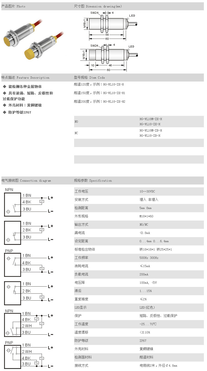 詳細信息 耐高溫接近開關(低溫) HG-WL18M-ZK-H,HG-WL18-ZK-H,HG-WL18M-ZB-H,HG-WL18-ZB-H,