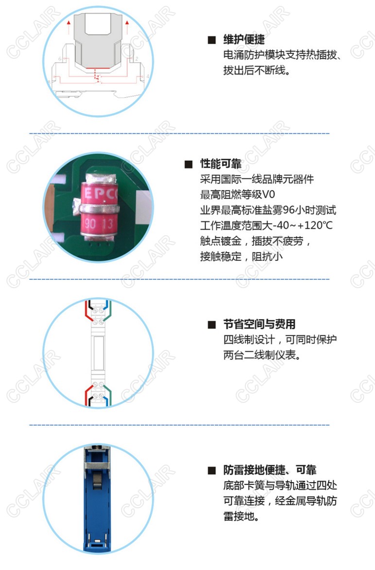 24VDC電源SPD,適合24VDC、電磁閥等電源回路,最大放電電流Imax(8/20us):20kA/線,12.5mm超薄,通過(guò)DIN35金屬導(dǎo)軌接地。