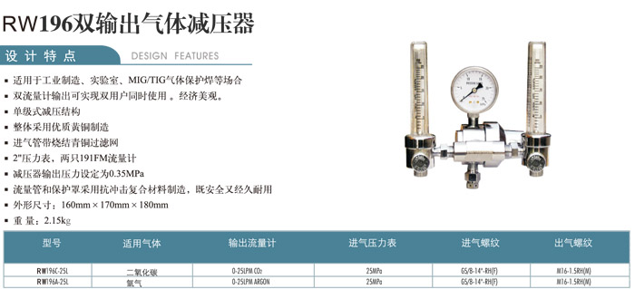 詳細信息 RW196C-25L,RW196A-25L,流量計減壓器